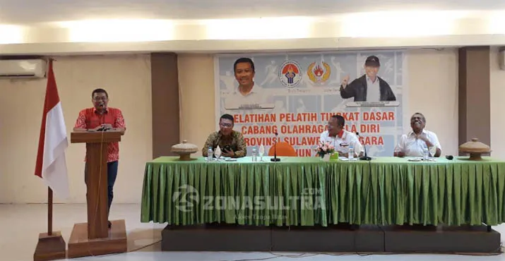 ZONASULTRA.COM, KENDARI – KONI Sulawesi Tenggara (Sultra) bersama Kementerian Pemuda dan Olahraga memberikan pelatihan kepada 100 pelatih bela diri. Pelatihan dilaksanakan Senin (8/10/2018) di Hotel Plasa Kubra Kendari.