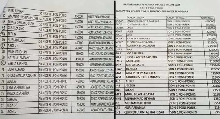 “Anak PNS juga dapat, pokoknya semua dapat,” kata Nuriati, Kepala Sekolah SDN 1 Poni-poniki.
