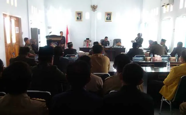 Suasana rapat istimewah pengumuman dan pengesahan Bupati dan Wakil Bupati terpilih periode 2016-2021. Dalam rapat tersebut, Selasa (2/2/2016) bertempat di Aula Setda setempat, hanya dihadiri 7 dari 20 anggota DPRD Butur. (Darso/ZONASULTRA.COM)