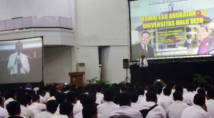 ZONASULTRA.COM,KENDARI– Sebanyak 1688 Calon Wisudawan Universitas Halu Oleo (UHO) dibekali pengetahuan Emosional Spritual Question (ESQ) di Auditorium Mokodompit UHO kendari, Jumat (5/8/2016).