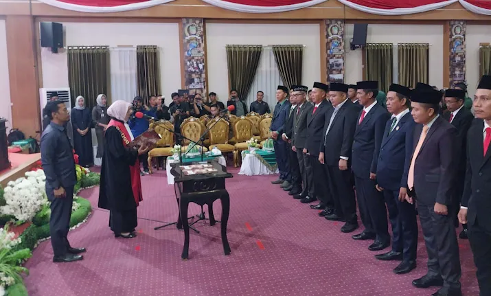 Sebanyak 20 anggota DPRD Kabupaten Konawe Utara (Konut) periode 2024-2029 resmi dilantik di Ruang Rapat Paripurna DPRD Kabupaten Konut, Senin (2/9/2024)