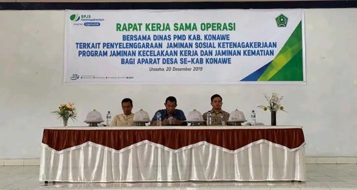 ZONASULTRA.COM, KENDARI – BPJAMSOSTEK melakukan rapat Kerja Sama Operasi (KSO) bersama Dinas Pemberdayaan Masyarakat dan Desa Kabupaten Konawe di Gedung Grand MM Unaaha, Jumat (20/12/2019).