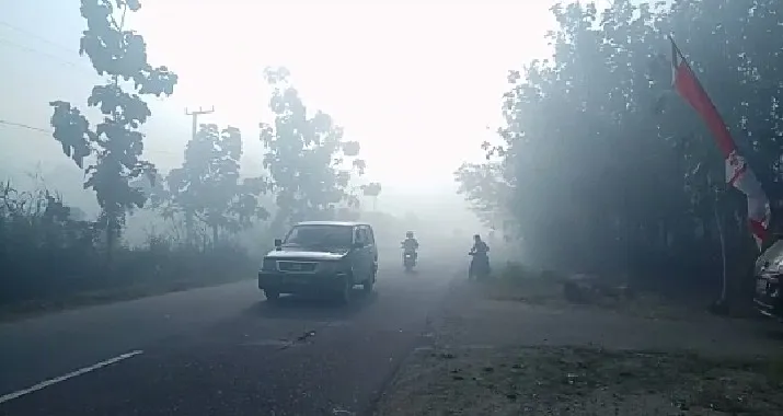 Ketebalan asap yang menimpa Kelurahan Lalolae juga sangat dirasakan oleh Sigit (29). Saking tebalnya asap, jarak pandangannya sangat terbatas.