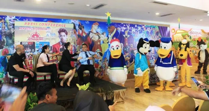 “Selain itu, di malam Disney Party yang mulai pada pukul 7 malam nanti juga akan diramaikan oleh artis Ibu Kota, yakni Bastian Steel dan Master Tarno, serta di depan Lobby juga nanti akan ada 5 jenis wahana permainan,” kata Sehat dalam konferensi pers di Lobby area Grand Clarion Hotel Kendari, Rabu 21/12/2016).