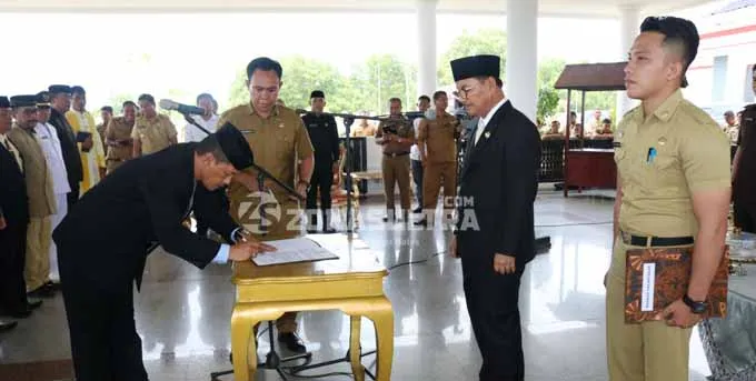 ZONASULTRA.COM, ANDOOLO – Sebanyak 39 Pejabat Eselon Lingkup Pemerintah Kabupaten Konawe Selatan (Konsel) Sulawesi Tenggara (Sultra) denga rincian 18 eselon II, 20 eselon III dan satu orang Camat dilantik oleh Bupati Konsel di Pendopo Rujab Bupati setempat, Senin (22/1/2018).