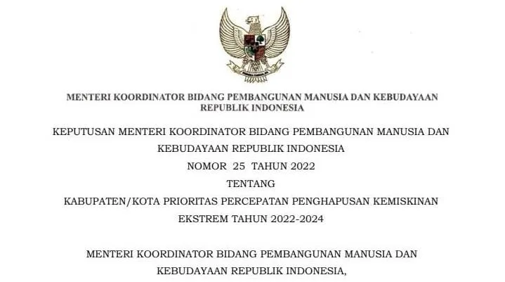 “Keputusan itu dikeluarkan berdasarkan Instruksi Presiden Nomor 4 Tahun 2022 tentang Percepatan Penghapusan Kemiskinan Ekstrem,” ungkapnya dalam SK tersebut.