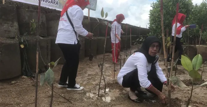 Perwakilan OASE Sultra Nur Endang Abbas menjelaskan untuk di Sultra penanaman mangrove dipusatkan di Desa Rapambinopaka ini melibatkan berbagai organisasi perempuan yang ada di Sultra semisal perempuan yang tergabung dalam organisasi Bhayangkari, Persit, Jalasenatri juga penggiat wilayah pesisir.