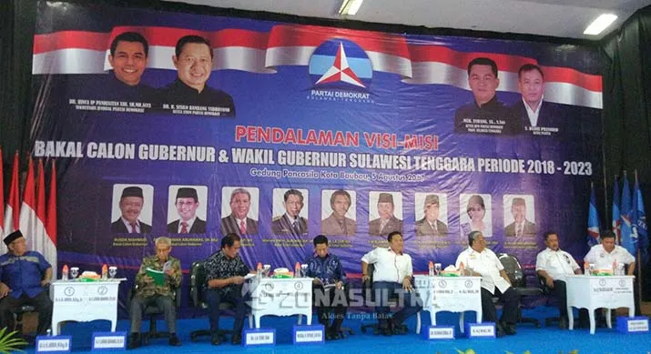 ZONASULTRA.COM, KENDARI – Partai Demokrat menggelar acara pendalaman visi-misi bakal calon gubernur dan wakil gubernur Sulawesi Tenggara (Sultra) periode 2018-2023, Sabtu (5/8/2017) di Gedung Pancasila, Kelurahan Wangkanapi, Kecamatan Wolio, Kota Baubau.