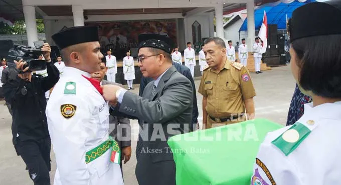 ZONASULTRA. COM- BURANGA – Bupati Buton Utara (Butur) Abu Hasan, mengukuhkan 70 anggota Paskibra setempat yang akan bertugas mengibarkan bendera Merah Putih pada Rabu (17/8/2016).