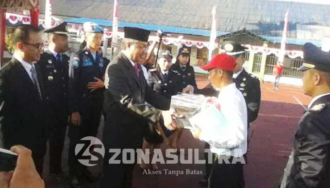 Berkas remisi bebas ini diberikan langsung oleh Gubernur Sulawesi Tenggara (Sultra) Nur alam yang sekaligus menjadi pembaca sambutan serentak kementrian hukum dan HAM.