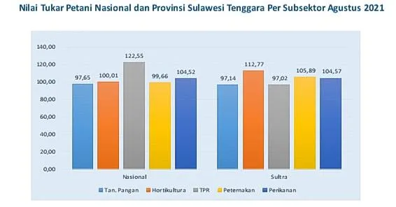 Kepala Badan Pusat Statistik (BPS) Sultra, Agnes Widiastuti mengatakan bahwa NTP masing-masing subsektor tercatat sebagai berikut: Subsektor Tanaman Pangan (NTPP) 97,14; Subsektor Hortikultura (NTPH) 112,77; Subsektor Tanaman Perkebunan Rakyat (NTPR) 97,02; Subsektor Peternakan (NTPT) 105,89 dan Subsektor Perikanan (NTNP) 104,57. Sedangkan Indeks NTP Nasional sebesar 104,68 atau naik sebesar 1,16 persen dari sebelumnya 103,48.
