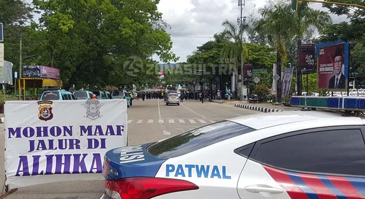 Pengalihan jalan ini dimulai sejak pukul 10.00 Wita, saat peserta aksi sudah berkumpul di kawasan eks MTQ. Rencananya arus lalu lintas akan kembali dibuka setelah massa membubarkan diri.