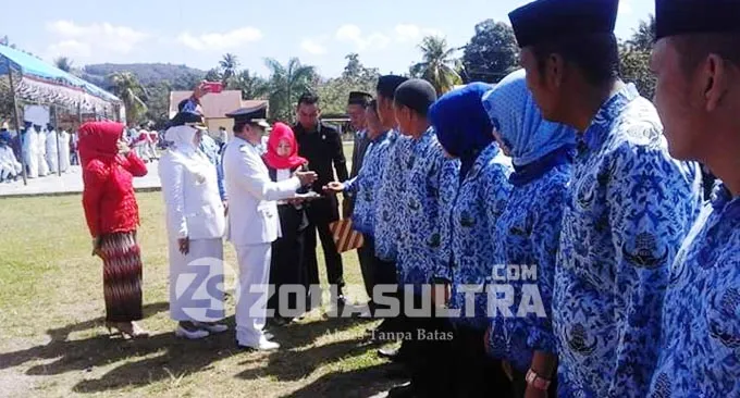 ZONASULTRA.COM, TIRAWUTA – Bupati Kolaka Timur (Koltim), Sulawesi Tenggara (Sultra), Tony Herbiansyah ditemani kepala dinas kesehatan setempat, Ulfa Wati menyerahkan secara simbolis 11 unit mobil dinas puskesmas keliling dan ambulance kepada 11 Kepala Puskesmas se-Koltim usai pelaksanaan upacara HUT RI ke-71, Rabu (17/8/2016) kemarin.