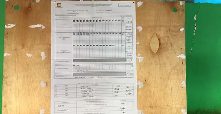 Dari jumlah DPT yang ada 290 jiwa, ada 9 suara yang tidak sah. Sehingga total suara sah 281 suara.