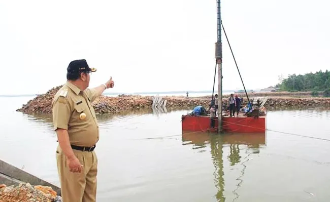 Wali Kota Kendari Asrun menyaksikan pemasangan tiang pancang pekerjaan tambat labuh di teluk Kendari.