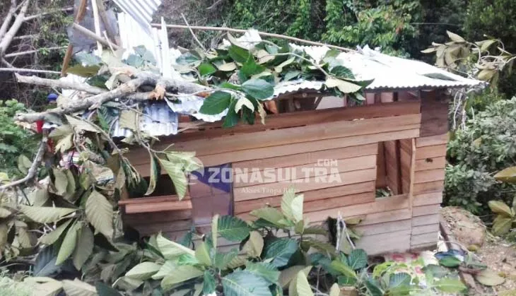 ZONASULTRA.COM, KENDARI – Angin kencang yang melanda Kelurahan Gunung Jati, Kecamatan Kendari, Kota Kendari, Sulawesi Tenggara (Sultra), Kamis (30/11/2017) sekitar pukul 17.00 Wita menyebabkan satu rumah warga yang terletak di pinggir jurang hancur tertimpa pohon cempedak.
