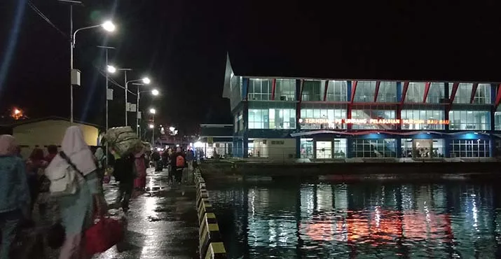 PELABUHAN - Suasana Pelabuham Murhum Baubau di Malam hari saat angkutan lebaran idul fitri 2019, beberapa waktu lalu. (M6/ZONASULTRA.COM)