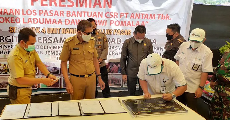 ZONASULTRA.COM, KOLAKA – PT Aneka Tambang (ANTAM) Unit Bisnis Pertambangan Nikel (UBPN) Sulawesi Tenggara (Sultra) membantu pembangunan empat lods pasar Dawi Dawi, kecamatan Pomalaa, kabupaten Kolaka.