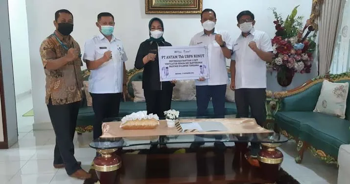 ANTAM KONUT- PT Antam Tbk UBPN Konawe Utara (Konut) memberikan bantuan fasilitas kesehatan ventilator atau alat bantu pernafasan di Rumah Sakit (RS) Bahteramas Kendari. Penyerahan 2 unit ventilator itu secara simbolis digelar di Rumah Jabatan (Rujab) Sekretaris Daerah (Sekda) Sultra, Rabu (17/11/2021) lalu. (ISTIMEWA)