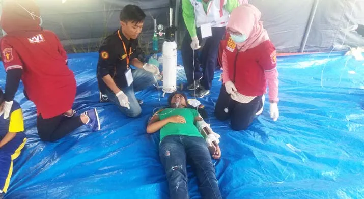Simulasi tanggap darurat dalam rangka mengantisipasi terjadinya bahaya banjir.