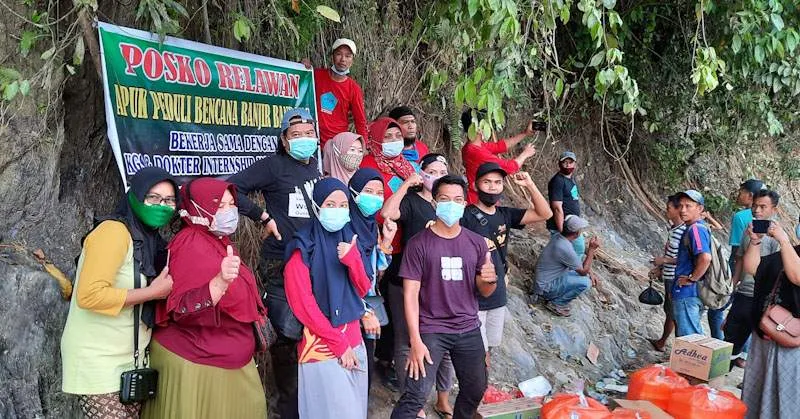 ZONASULTRA.COM, LASUSUA – Asosiasi Pelaku Usaha Kuliner (Apuk) Kabupaten Kolaka Utara (Kolut) menggandeng dokter internship untuk membagikan makanan siap saji dan melakukan pengobatan kepada masyarakat terdampak bencana banjir bandang, Minggu (20/12/2020).