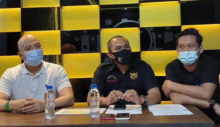 KET.GAM AROKAB KENDARI- Ketua Arokab Kendari Amran (tengah) didampingi Pengurus Parmin (kiri) dan anggota Arokab Rahmat Efendi (kanan) dalam acara konferensi pers, Kamis (8/7/2021). (ILHAM SURAHMIN/ZONASULTRA.COM)