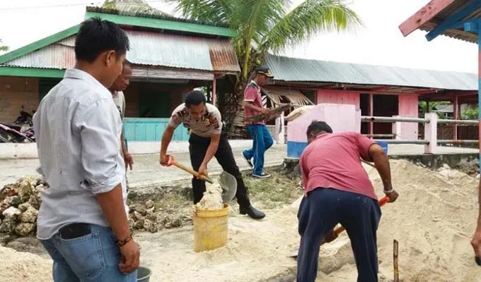ZONASULTRA.COM, WANGI-WANGI – Kepolisian Sektor (Polsek) Wangi-Wangi Selatan melakukan kerja bakti untuk merehabilitasi peningkatan bangunan Poskamling Padakauang Sama Mola Raya. Pengerjaan poskamling ini dilakukan untuk mengurangi peningkatan masalah yang berkaitan dengan keamanan dan ketertiban masyarakat di Wilayah Mola Raya, Kecamatan Wangi-Wangi Selatan Kabupaten Wakatobi