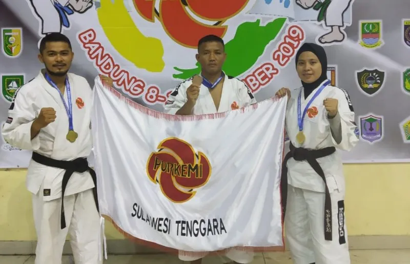 ZONASULTRA.COM, KENDARI – Tiga kenshi Persatuan Olahraga Kempo Indonesia (Porkemi) Sulawesi Tenggara (Sultra) berhasil mengharumkan nama daerah di Kejuaraan Nasional (Kejurnas) kempo di Bandung, pada Sabtu (9/11/2019). Tiga orang wakil Bumi Anoa itu sukses memboyong 2 medali emas dan satu perunggu.