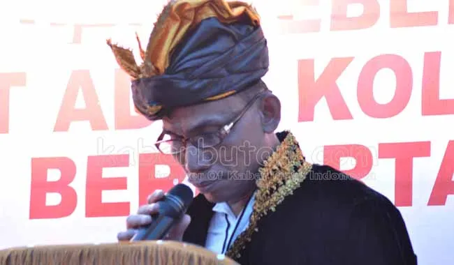 Asisten I Sekda Kota Baubau, La Ode Aswad menggunakan sentuhan adat Buton. Foto: Adnan Irham