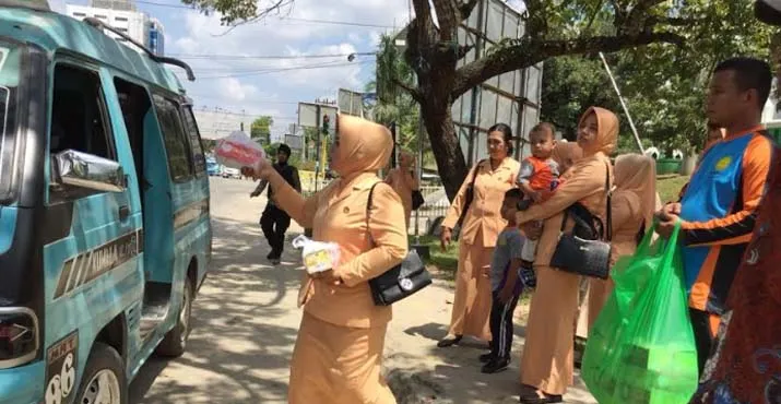 Selain kepada tukang becak, para ibu-ibu pegawai SAR Kendari ini juga melakukan hal yang sama kepada pemulung hingga pengguna jalan yang berada di sekitar Masjid Agung Al-Kautsar, Kendari. Kegiatan itu dimulai usai pelakaksanaan Sholat Jumat.