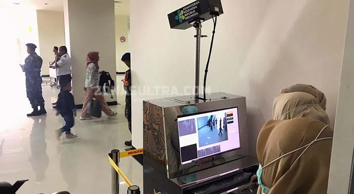 ZONASULTRA.COM,KENDARI- Kantor Kesehatan Pelabuhan (KKP) Kelas II Kendari memasang alat pendeteksi suhu badan di pintu kedatangan Bandara Haluoleo Kendari. Hal ini seiring dengan pengawasan terhadap indikasi penyebaran virus corona di negara tetangga salah satunya China.