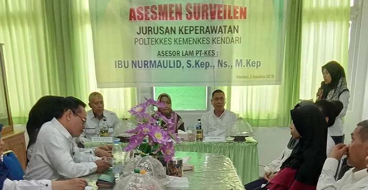 POLTEKKES KENDARI - Jurusan Keperawatan pada Politeknik Kesehatan (Poltekkes) Kementrian Kesehatan (Kemenkes) Kendari kembali mendapat kunjungan dari tim asesor Badan Akreditasi Nasional Perguruan Tinggi (BAN-PT), Kamis (2/8/2018). (CR2/ZONASULTRA.COM)