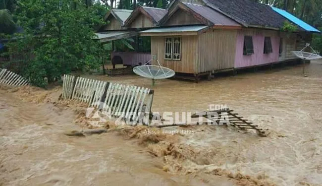 ZONASULTRA.COM, RUMBIA – Luapan Sungai Lakambula Kecamatan Kabaena selain menghanyutkan tiga buah rumah warga di Kelurahan Teomokole, juga merendam pemukiman warga di Kelurahan Rahampuu.