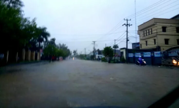 BANJIR – Salah satu ruas jalan di kota Kendari yang terkena banjir, Rabu (31/5/2017). (Rustam/ZONASULTRA.COM)