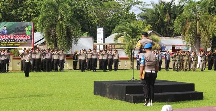UPACARA - Kapolres Konsel saat memimpin upacara gelar operasi ketupat 2019 yang digelar di halaman Mapolres Konsel, Selasa (28/5/2019). (ERIK ARI PRABOWO/ZONASULTRA.COM