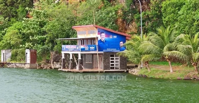 Hanya dipisahkan oleh danau air payau, cottage yang saat ini digunakan sebagai Baruga Aspirasi terlihat dari jalan Bypass Lasusua. Jika dari arah Pelabuhan Tobaku, sebelah kiri terlihat cottage kecil berwarna biru khas lambang Demokrat.
