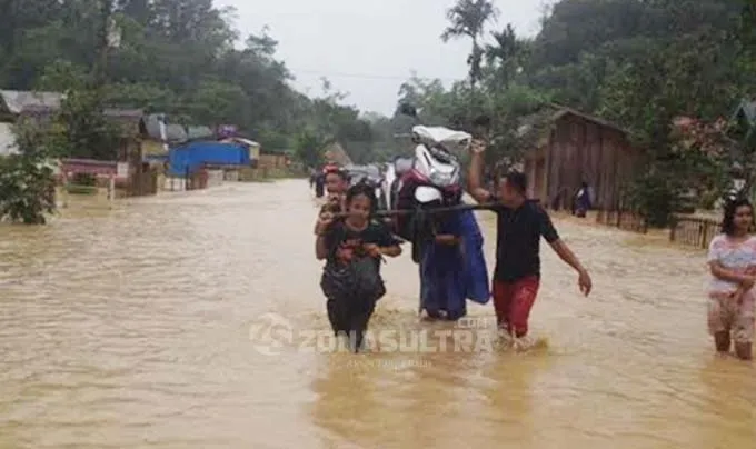 Di Kecamatan Sampara, terlihat air sudah setinggi lutut orang dewasa, bahkan ruas jalan yang menghubungkan Kabupaten Konawe dan Kota Kendari ikut tergenang. Akibatnya aktivitas lalu lintas lumpuh. Beberapa kendaraan roda dua yang melintasi jalur tersebut, banyak yang mati mendadak akibat terendam air.