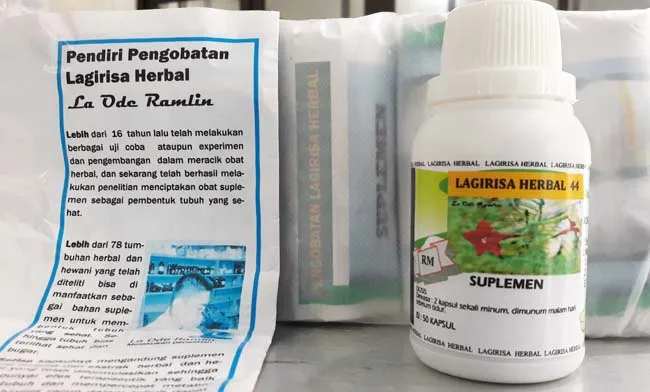 Nama produk tersebut adalah Lagarisa Herbal 44 (suplemen) yang dibanderol seharga Rp.170 ribu per botol.