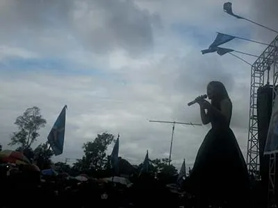 Kedua artis dangdut tersebut membawakan sejumlah lagu yang dielu-elukan warga. Berbagai kalangan anak muda, orang tua, bahkan anak-anak juga turut menonton.