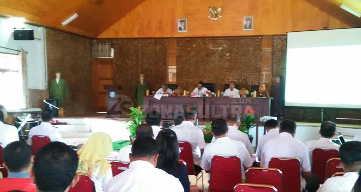 WAKATOBI WAVE – Jajaran Pemda Wakatobi mengelar rapat pembentukan panitia penyelenggara Wakatobi Wave 2017. Rapat diselenggarkan di gedung Pesanggrahan Budaya Pemda Wakatobi, Kecamatan Wangiwangi Selatan, Rabu, (11/10/2017). (Nova Ely Surya/ZONASULTRA.COM)