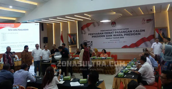 ZONASULTRA.COM, JAKARTA – Komisi Pemilihan Umum (KPU) RI mengundi dan menetapkan jadwal penyiaran debat pasangan Calon Presiden (Capres) dan Calon Wakil Presiden (Cawapres) pada Pemilu 2019. Pelaksaan debat keseluruhan akan digelar di Jakarta dan ditayangkan oleh media yang telah disepakati bersama.