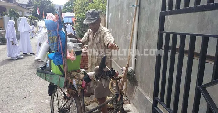 ZONASULTRA.COM, KOLAKA – Mengendarai sepeda tua bekas ia menjajakan es krim buatannya sendiri dari satu tempat ke tempat lainnya. Usia lanjut tak menyurutkan semangatnya mencari rezeki demi menyambung sisa umurnya.