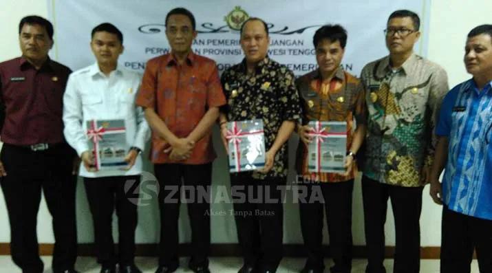 PENYERAHAN LHP – Bupati Konawe Utara (Konut), H.Ruksamin bersama Wakil Bupati Konut, Ruap didampingi Sekda Konut, Marthaya dan Kepala BPKAD Konut, Marthen Minggu saat menerima laporan hasil pemeriksaan (LHP) yang diserahkan oleh Tim Badan Pemeriksa Keuangan (BPK) RI melalui BPK Provinsi. Konut resmi meraih WDP 2016. (Jefri/ZONASULTRA.COM)