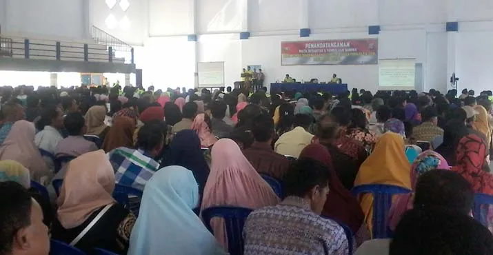 ZONASULTRA.COM, KENDARI – Ribuan orang tua/wali peserta calon siswa (casis) polisi memadati Gedung Poltekes Andounuhu Kendari, Jumat (13/4/2018). Mereka bersama Pantia Daerah (Panda) Sulawesi Tenggara (Sultra) menandatangani pakta integritas dan pembacaan sumpah dalam rangka penerimaan polisi secara terpadu 2018.