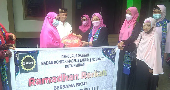 ZONASULTRA.COM, KENDARI – Pengurus Badan Kontak Majelis Taklim (BKMT) Kota Kendari membagikan bantuan ratusan paket sembilan bahan kebutuhan pokok atau sembako di awal bulan Ramadan 2021.