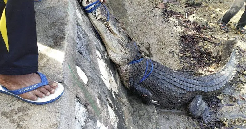 Kepala BKSDA Sultra Sakrianto Djawie menjelaskan, bahwa ada warga sekitar pukul 7 pagi melaporkan seekor buaya terjaring sero (alat penangkap ikan tradisional) ke kepala desa setempat. Atas hal itu, Kades Lambangi memerintahkan warganya untuk menangkap buaya tersebut.
