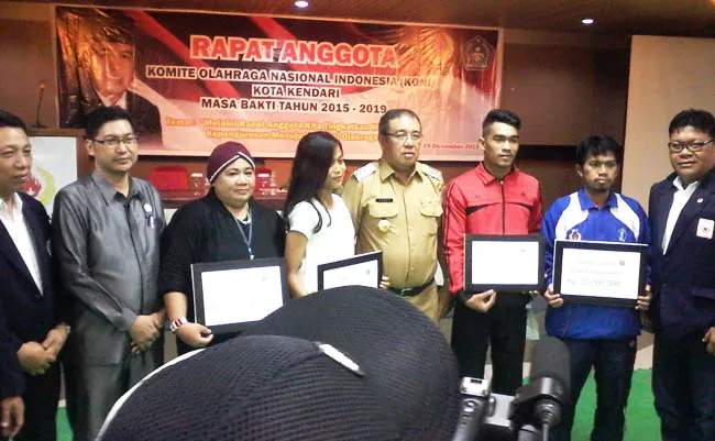 ZONASULTRA.COM, KENDARI – Senyum semringah terlihat jelas di wajah-wajah atlit Kota Kendari ketika menerima bonus mereka setelah sekian lama ditunda. Bonus itu diserahkan langsung oleh pemerintah Kota Kendari pada Selasa, (29/30/2015) di salah satu hotel di Kendari. Bonus itu untuk atlit Kota Kendari yang meraih meraih medali pada Porprov XII lalu di Buton Utara.