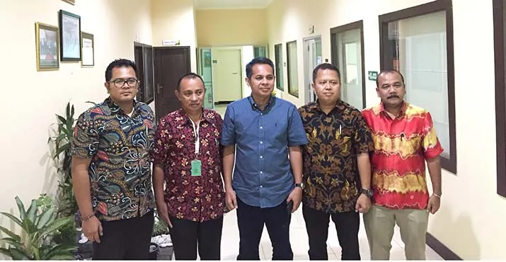BPJS KETENAGAKERJAAN - Deputi Direktur BPJS Ketenagakerjaan wilayah Sulawesi Maluku Sudirman Simamora (tengah), Asisten Deputi Wilayah Bidang Manajemen Mutu dan Resiko I Putu Wiradana (ujung kiri) I Putu Wiradana, Kepala Cabang BPJS Ketanagakerjaan Kendari La Uno (kedua dari kiri), Asisten Deputi Wilayah Bidang Pemasaran Zulkarnain Mahading (kedua dari kanan) dan Asisten Deputi Wilayah Bidang Keuangan Basuki Wismokaryanto (ujung kanan). (ILHAM SURAHMIN/ZONASULTRA.COM)