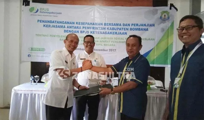 Kepala Kantor BPJS Ketenagakerjaan cabang Kendari La Uno mengatakan, penandatanganan terkait penyelenggaraan kepesertaan jaminan sosial ketenagakerjaan bagi pekerja rentan dan aparat pemerintah non aparatur sipil negara (ASN) Kabupaten Bombana.