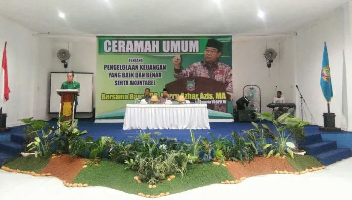 Hal itu disampaikan anggota VI BPK RI, Harry Azhar Azis saat kunjungan kerja di Konut pada Sabtu (19/1/2018). Kegiatan ceramah umum oleh Azhari itu mengangkat tema tentang pengelolaan keuangan yang baik dan benar serta akuntabel bertempat di Aula Konasara yang yang dihadiri wakil Bupati Konut, Raup serta jajaran SKPD Konut, pemerintan Kecamatan, Lurah, Desa dan bendahara se-Kabupaten Konut.